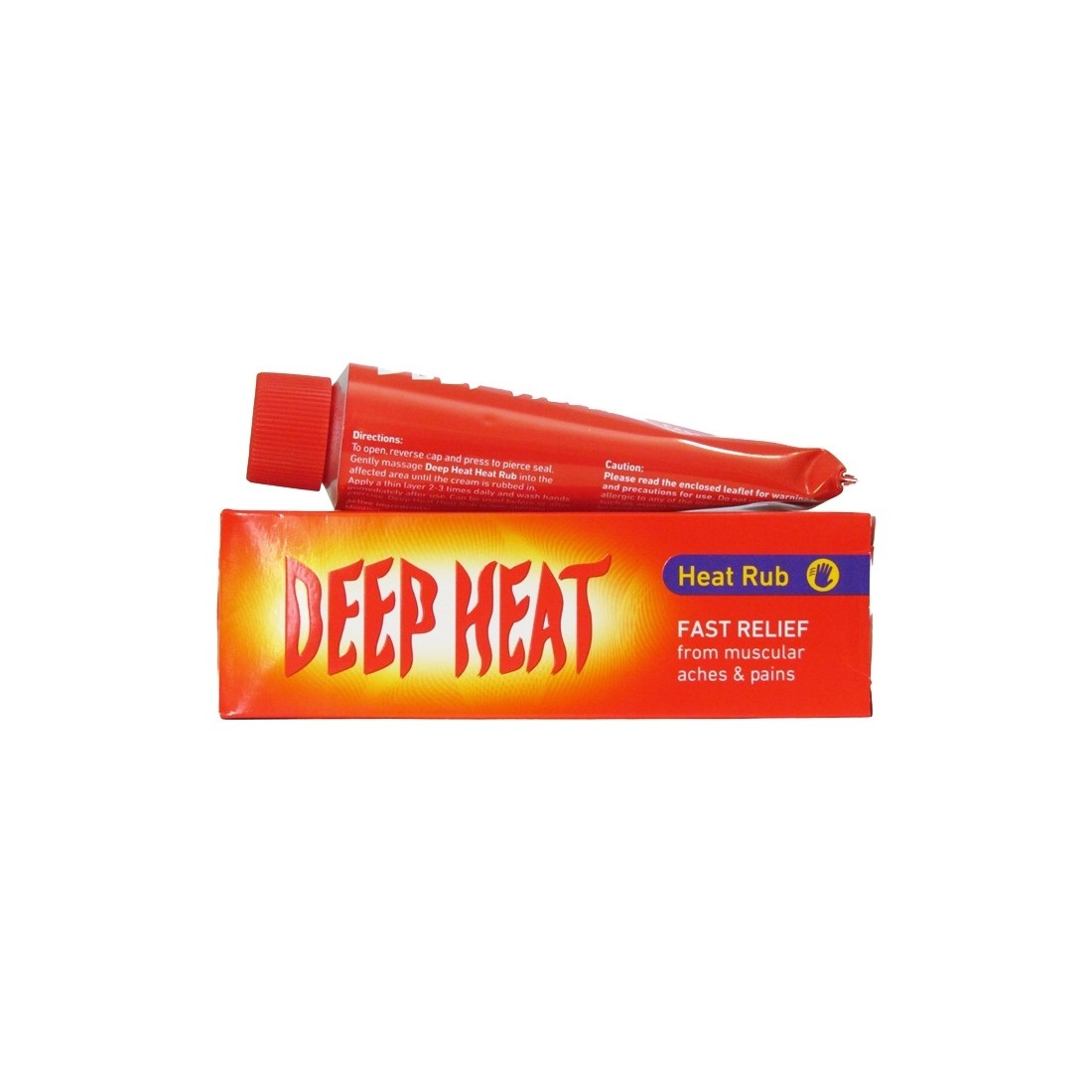 Deep Heat Heat Rub is a fast acting, non greasy pain relieving cream. The dual action of pain relief + heat provides targeted, warming relief at the site of pain. Deep Heat Heat Rub contains the asprin -like drug methyl salicylate for effective pain relief and warming ingredients that increase blood flow and provide relief from , back pain, sciatica, fibrositis, sprains, bruises and chillblains .Can be used before or after exercise.