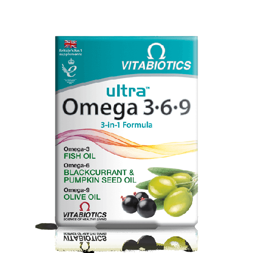 Ultra Fish Oils is a range of premium grade fish oils designed to meet the highest quality and purity standards appealing to those who are looking for the best marine oils available. Ultra Omega 3·6·9 capsules, a unique 3-in-1 formula providing the benefits of Omega-3, Omega-6 and Omega-9 all in one capsule. These beneficial EFA's (Essential Fatty Acids) are sourced from Blackcurrant and Pumpkin seed oils, Omega-3 Fish Oil and Olive Oil.